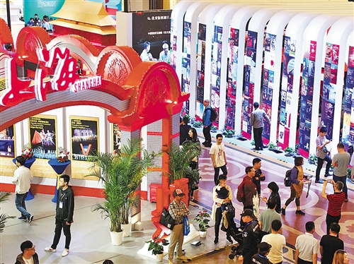 5月19日,观众在第十二届中国艺术节演艺及文创产品博览会上参观。新华社记者 任 珑摄