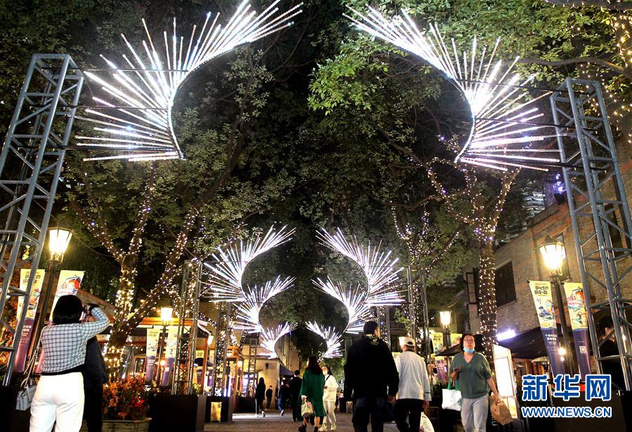 11月16日,主题为“邻里”的彩灯在上海新天地绽放。 当日,“2020光影上海”灯光艺术节在上海新天地揭幕,由国内外艺术机构设计制作的一批光影艺术装置亮相,助力申城夜间经济。 新华社记者 陈飞 摄