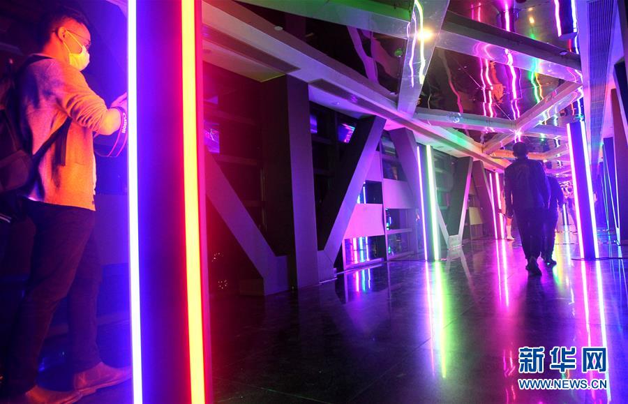 11月16日在上海新天地拍摄的主题为“空心之火”的彩灯。 当日,“2020光影上海”灯光艺术节在上海新天地揭幕,由国内外艺术机构设计制作的一批光影艺术装置亮相,助力申城夜间经济。 新华社记者 陈飞 摄
