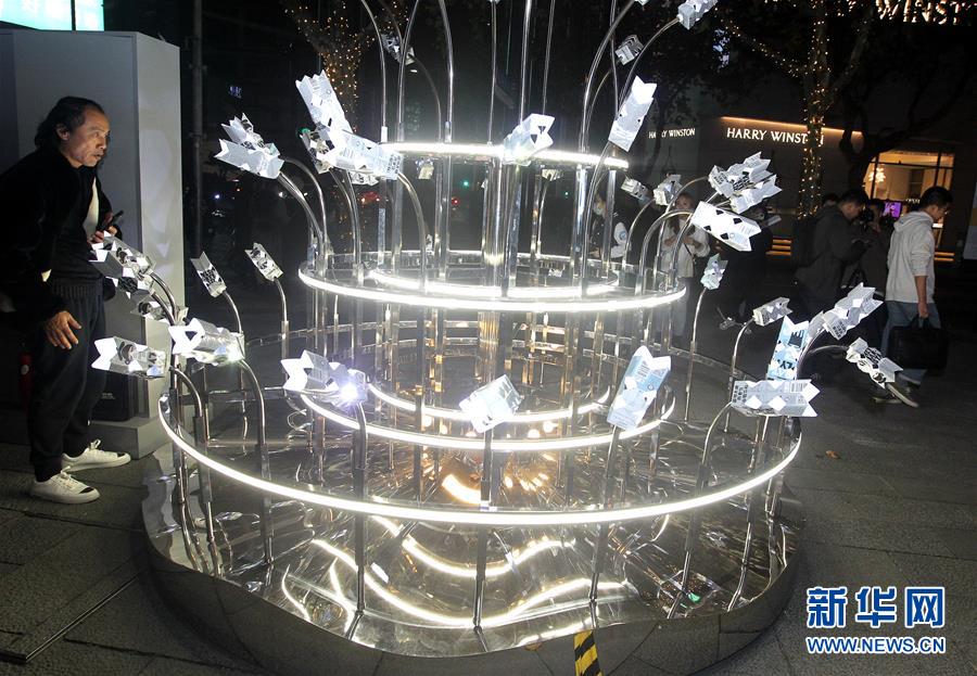 11月16日,主题为“光之翼”的彩灯在上海新天地绽放。 当日,“2020光影上海”灯光艺术节在上海新天地揭幕,由国内外艺术机构设计制作的一批光影艺术装置亮相,助力申城夜间经济。 新华社记者 陈飞 摄
