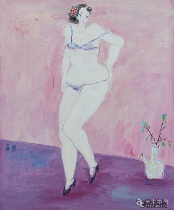 其实近年来,她的创作主要还是在研究《小人物》系列,她通过描述各种懒散姿势的胖乎乎的小女人,表现城市有闲阶层女性的某种生命状态或者是生活场景。在当下社会中,这样的女性已经形成了一个相当大的群体。中国社会从过去的贫穷、落后、匮乏的时期逐渐走向了一部分人相对富有的社会,虽然中国社会有着特殊的性质,但是仍然造就了一大批所谓的“中产者”。这些人脱离了为生存奔波劳碌的状态,进入了物质富有,精神追求加大却茫然空虚的状态。由于传统信仰和精神依存在近几十年的破坏和毁灭,在人们物质忽然富有之后却发现精神世界一片空白,而人是无法承受生命之轻的一种生灵,在这样的状况下,人却是一种极易堕落的物种。人类一旦摆脱了物质的重负,迎来的自然就是精神的无聊,由于社会不能给予,人们就会自己去寻找灵丹妙药。然而中国社会制度的特殊性,使得自由选择的空间相对窄小,这样便会使得那些寻求者,一方面需要解放与个性的放逐,一方面也只能在有限的选择中选择,这就是我们看到的中国有闲新阶层的生活状况。于是我们看到有人整天练瑜加、有人泡酒吧、有人带着功利心学佛信基督,也有人疯狂寻找一场又一场的“爱情”等等。但是最终都会应验哲学家叔本华的话:所有的幸福都是虚幻的,而苦难才是真实的。因为没有自我智慧所寻找的一切都是无法确定的。在徐春丽的笔下,那些小女人或坐或躺,或茫然或沉思,在半梦半醒之间,在醉生梦死之间她们寻求着各自快乐的片刻时光。
